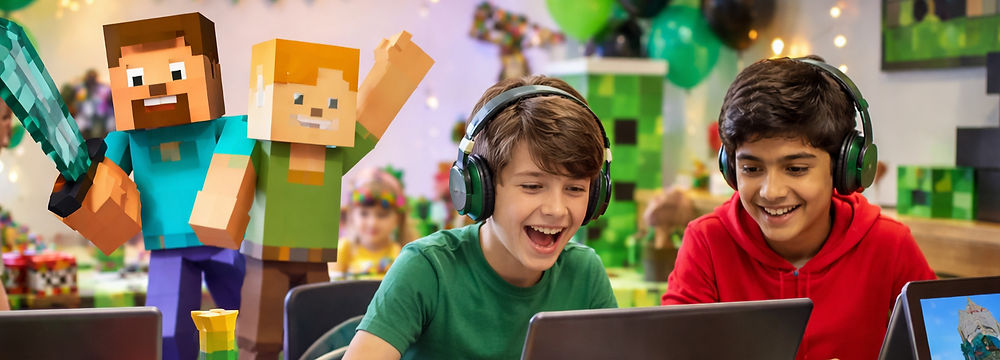 Creative, Engaging & Stress-Free Turn your child’s birthday into an unforgettable adventure with our fully hosted Minecraft party experience. We bring everything needed for up to 20 players, including laptops, setup, and a custom-designed Minecraft world tailored to your child’s favourite theme – whether that’s Pokémon, Disney, K-Pop or classic Minecraft. Children will enter a shared creative world where they can explore, build, and collaborate together. To keep everyone engaged, we provide optional individual build challenge cards, giving children fun ideas and goals to work towards at their own pace. These are perfect for sparking creativity, especially for those who may be new to Minecraft or prefer structured activities. Our experienced team guides the session, balancing free play with light challenges, group moments, and opportunities for teamwork. We can also include mini team challenges, such as building competitions, treasure hunts or collaborative projects, helping children interact and have fun together rather than just playing side-by-side. To make the experience even more special, we will: Create a themed centrepiece build for the birthday child Include group showcase moments where children present their builds Add fun achievements or awards (e.g. “Best Builder”, “Most Creative”) Everything is designed to be inclusive, creative, and enjoyable for all skill levels - from complete beginners to experienced players. Best of all, we handle the full setup and pack down, so parents can relax and enjoy the celebration while we take care of the tech and entertainment. Please Note: Sessions are hourly, but we have accounted for 15 minutes before and after to set up and pack away. We can only accommodate 20 children on devices at one time - although we have also mastered the art of rotation too, so all children can experience the fun.
